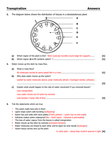Transpiration And Water Uptake In Plants 2 Powerpoints 2 W S Crossword Post 16 Teaching Resources